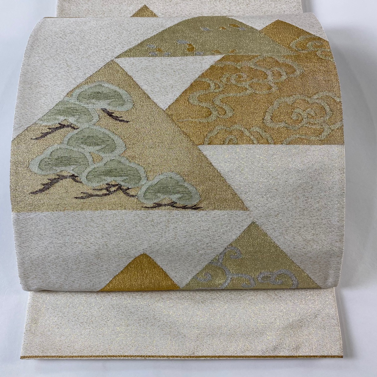 袋帯 秀品 笠松 瑞雲 金糸 箔 ベージュ お太鼓柄 正絹 中古 在庫一掃