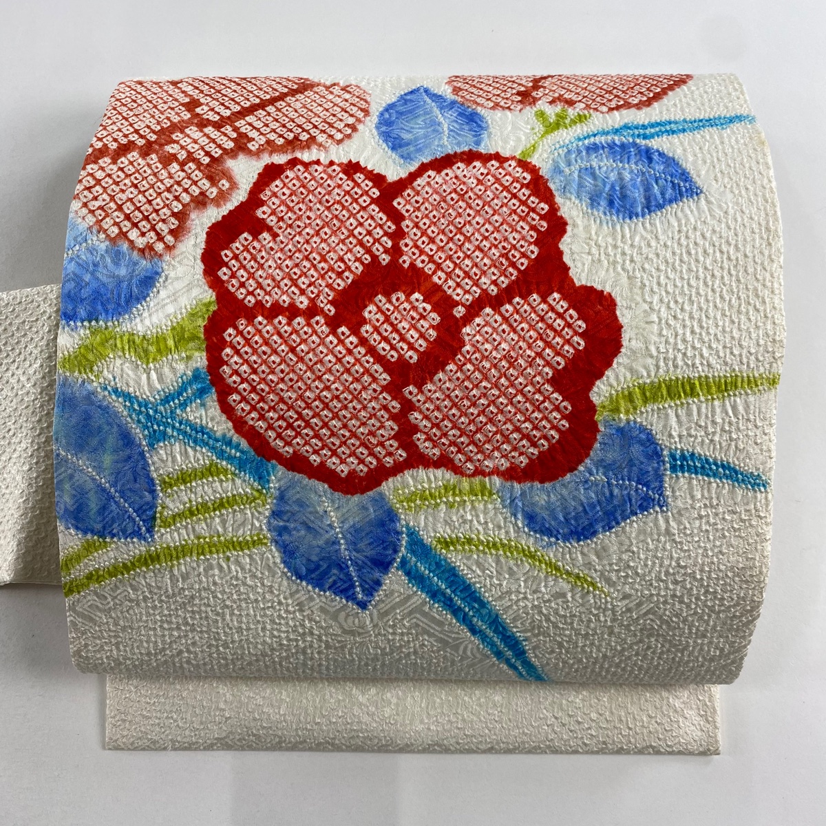 名古屋帯 秀品 草花 絞り クリーム 正絹 中古 在庫一掃