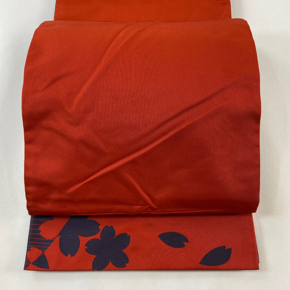 袋帯 秀品 桜 桜の花びら 赤 全通 正絹 中古 在庫一掃