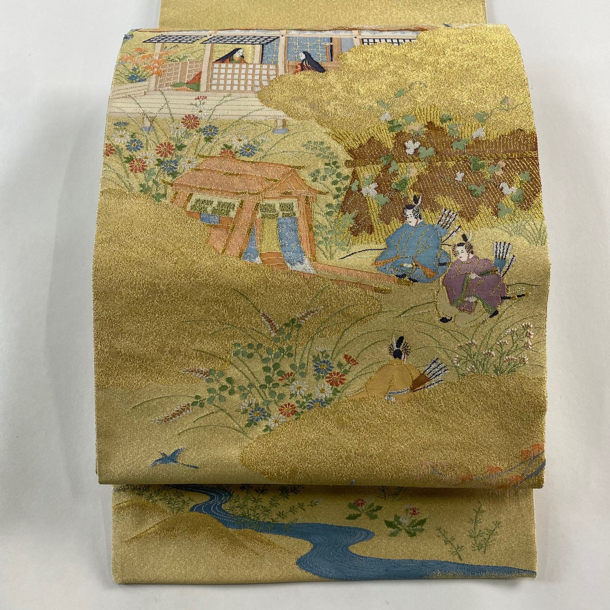 袋帯 秀品 人物 建物 金糸 金色 お太鼓柄 正絹 中古 在庫一掃