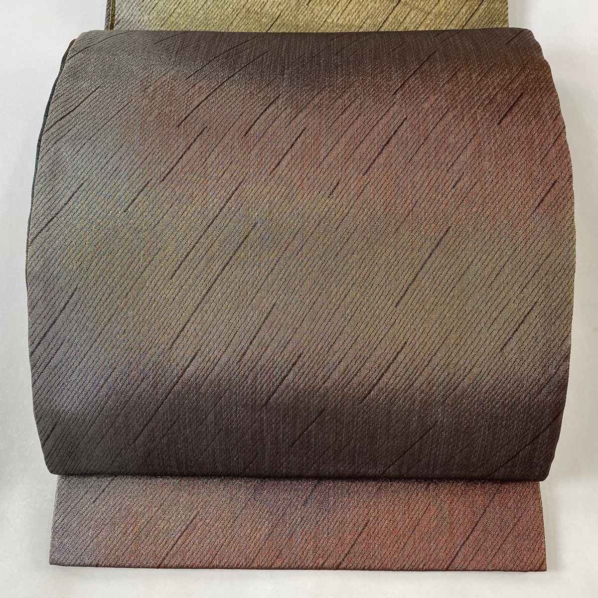 袋帯 秀品 斜縞 ラメ糸 茶紫 全通 正絹 中古 在庫一掃