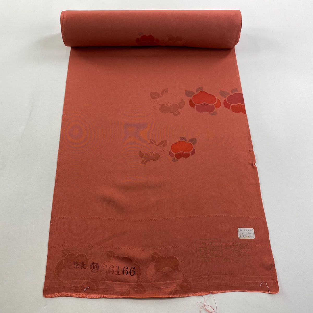 反物 優品 羽尺 羽織 和装コート 椿 地紋 茜色 正絹 中古 在庫一掃