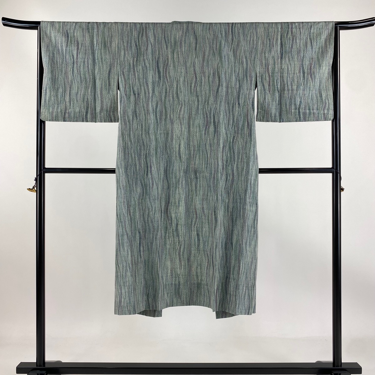 道中着 身丈129.5cm 裄丈63.5cm S 和装コート 紬地 縞 幾何学模様 灰緑 正絹 美品 逸品 中古 在庫一掃