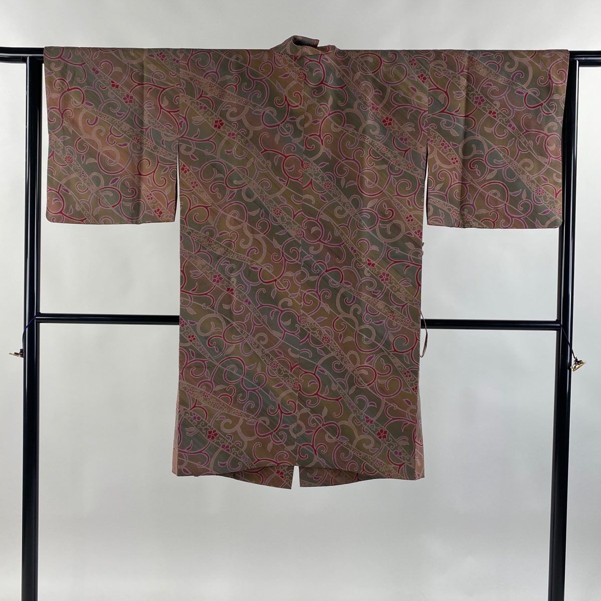 道中着 身丈103cm 裄丈63.5cm S 和装コート 蔦 花唐草 ぼかし 小豆色 正絹 秀品 中古