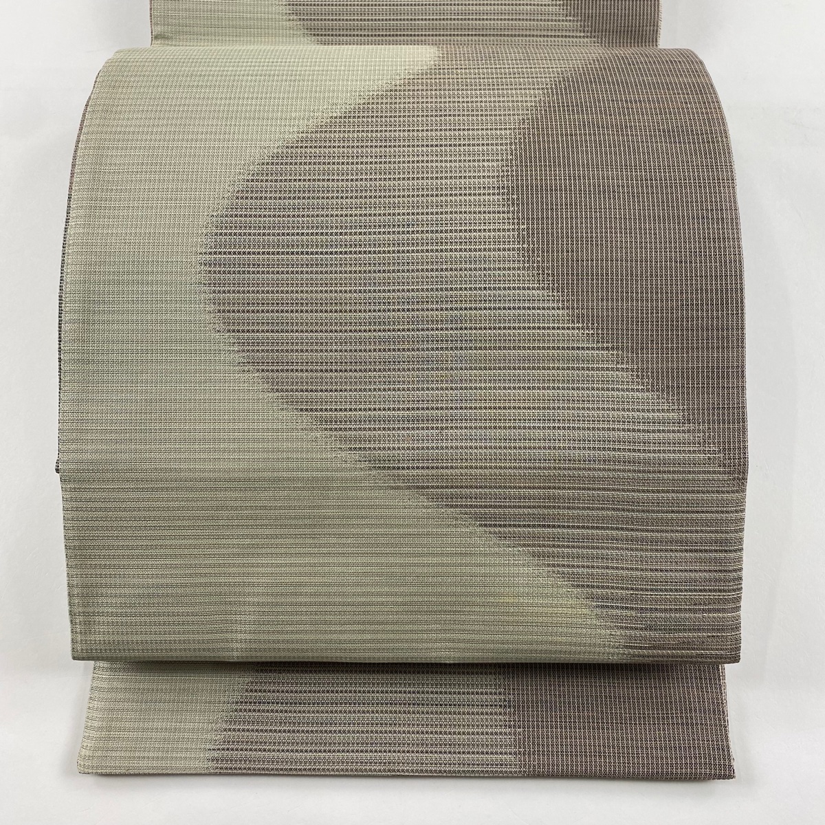 袋帯 秀品 霞 幾何学 灰緑 六通 正絹 中古 在庫一掃