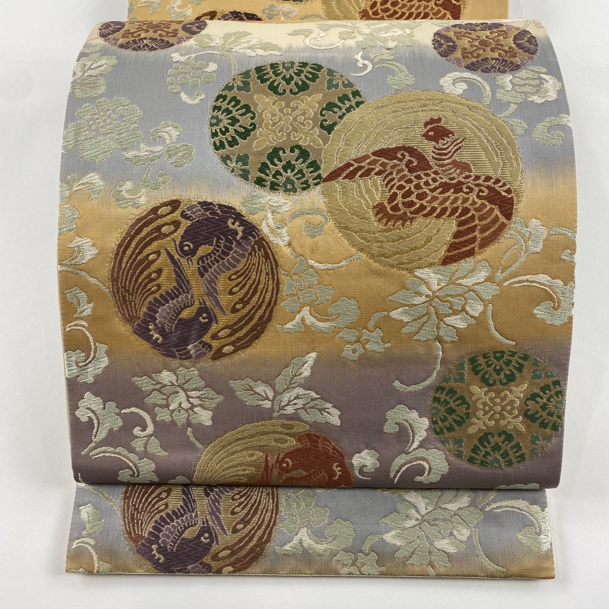 袋帯 秀品 花唐草 鳥 箔 唐織 薄紫 六通 正絹 中古 在庫一掃