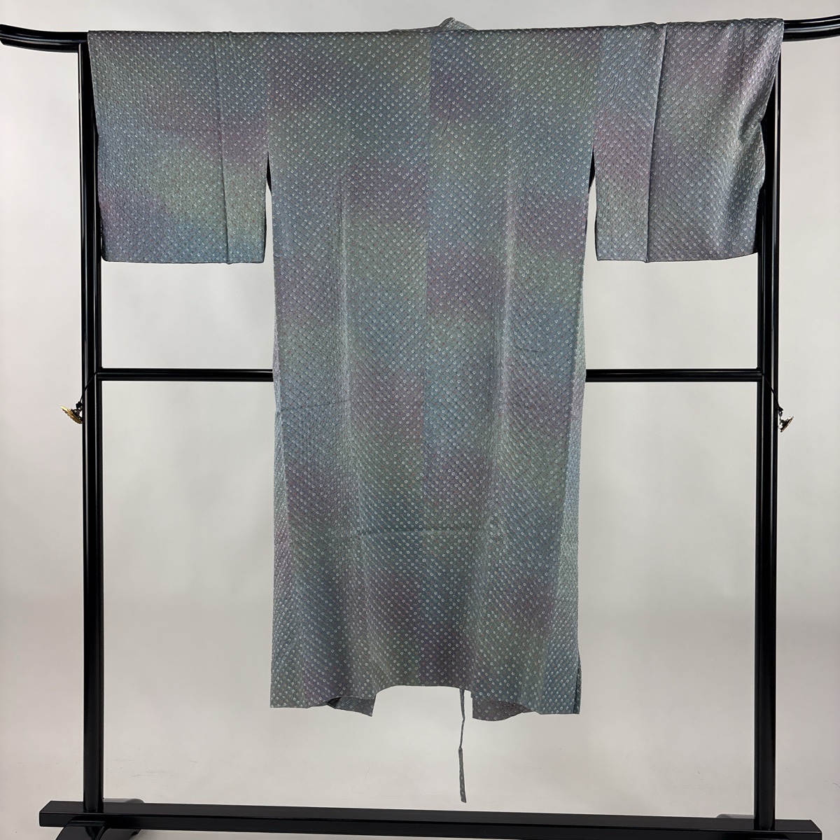 美品 道中着 身丈128.5cm 裄丈65.5cm M 和装コート 着物衿 幾何学 絞り ぼかし 青灰色 正絹 名品 中古