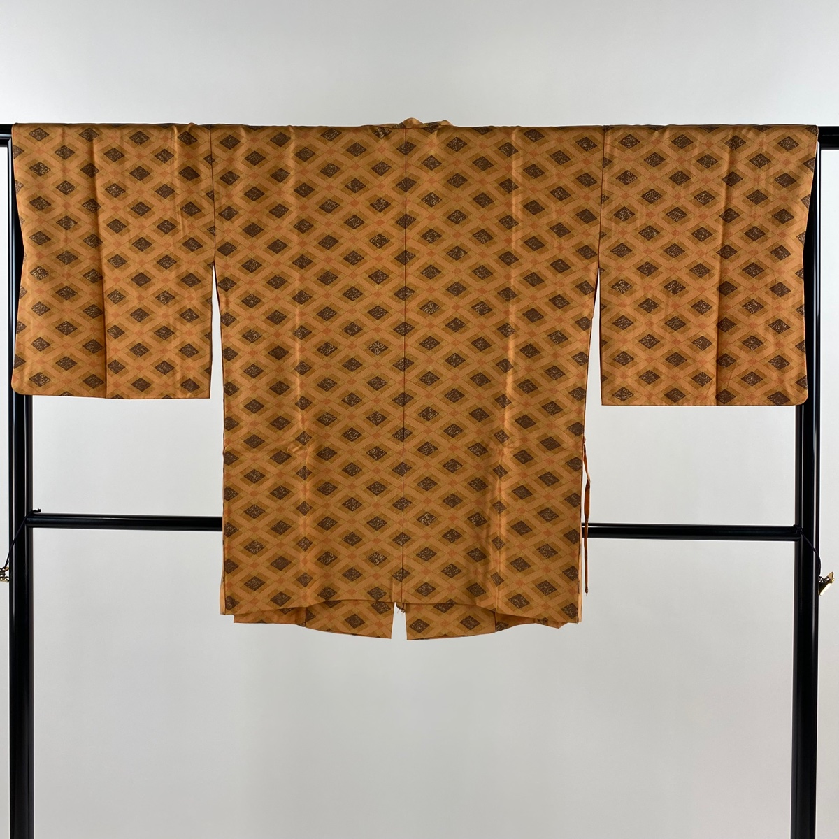 美品 道中着 身丈81.5cm 裄丈66.5cm M 和装コート 斜め格子 オレンジ 正絹 秀品 中古