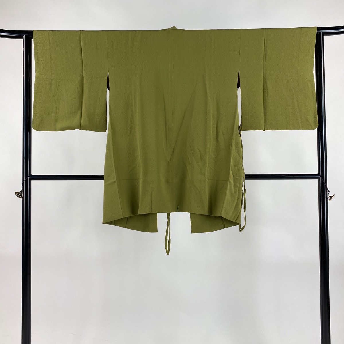道中着 身丈84.5cm 裄丈63cm S 花井幸子 和装コート 着物衿 落款あり 縮緬 鶯色 正絹 秀品 中古