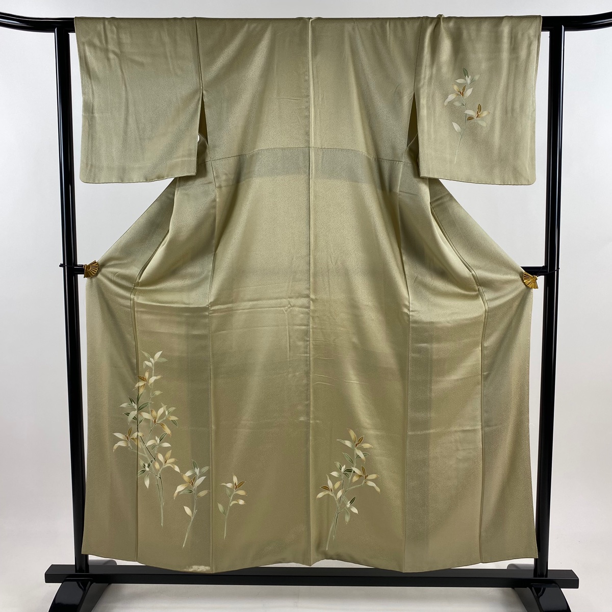 付下げ 身丈155cm 裄丈62cm S 袷 葉柄 灰緑 正絹 秀品 中古 在庫一掃