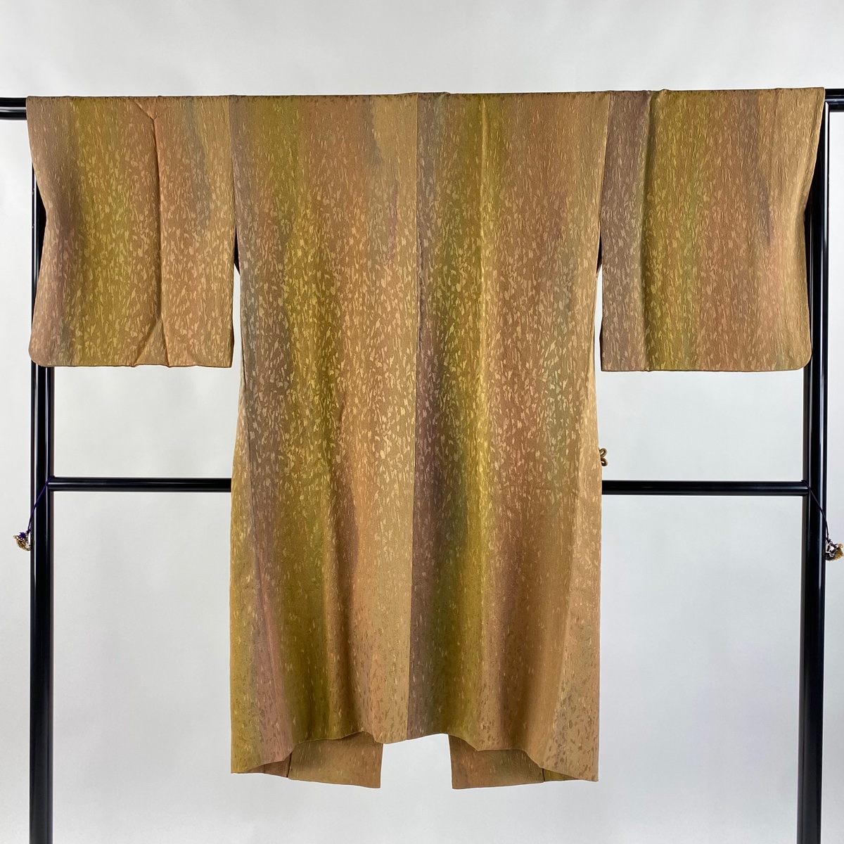 美品 道中着 身丈111.5cm 裄丈66cm M 和装コート 地紋 ぼかし 山吹茶色 正絹 名品 中古