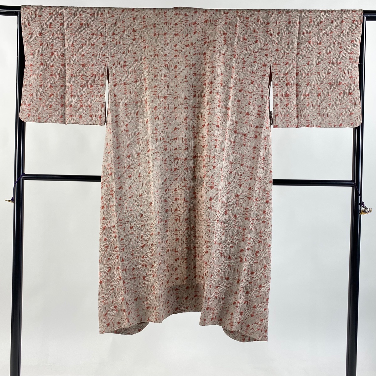 道中着 身丈123cm 裄丈65cm M 和装コート 着物衿 幾何学模様 絞り 薄小豆 正絹 逸品 中古