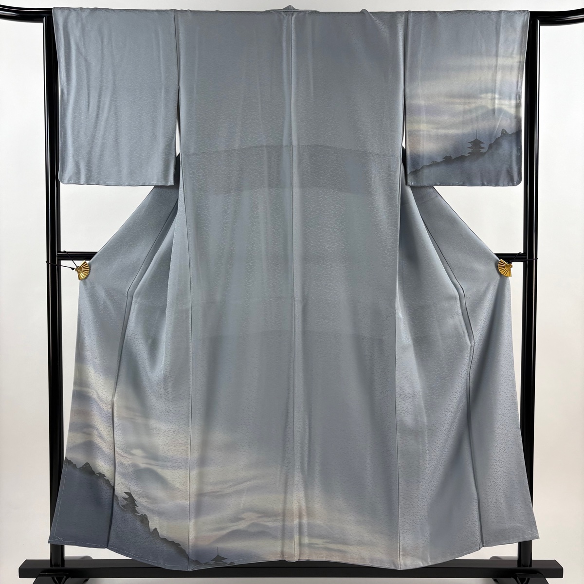 付下げ 身丈154cm 裄丈64.5cm M 袷 霞 シルエット ぼかし 青灰色 正絹 秀品 中古 在庫一掃