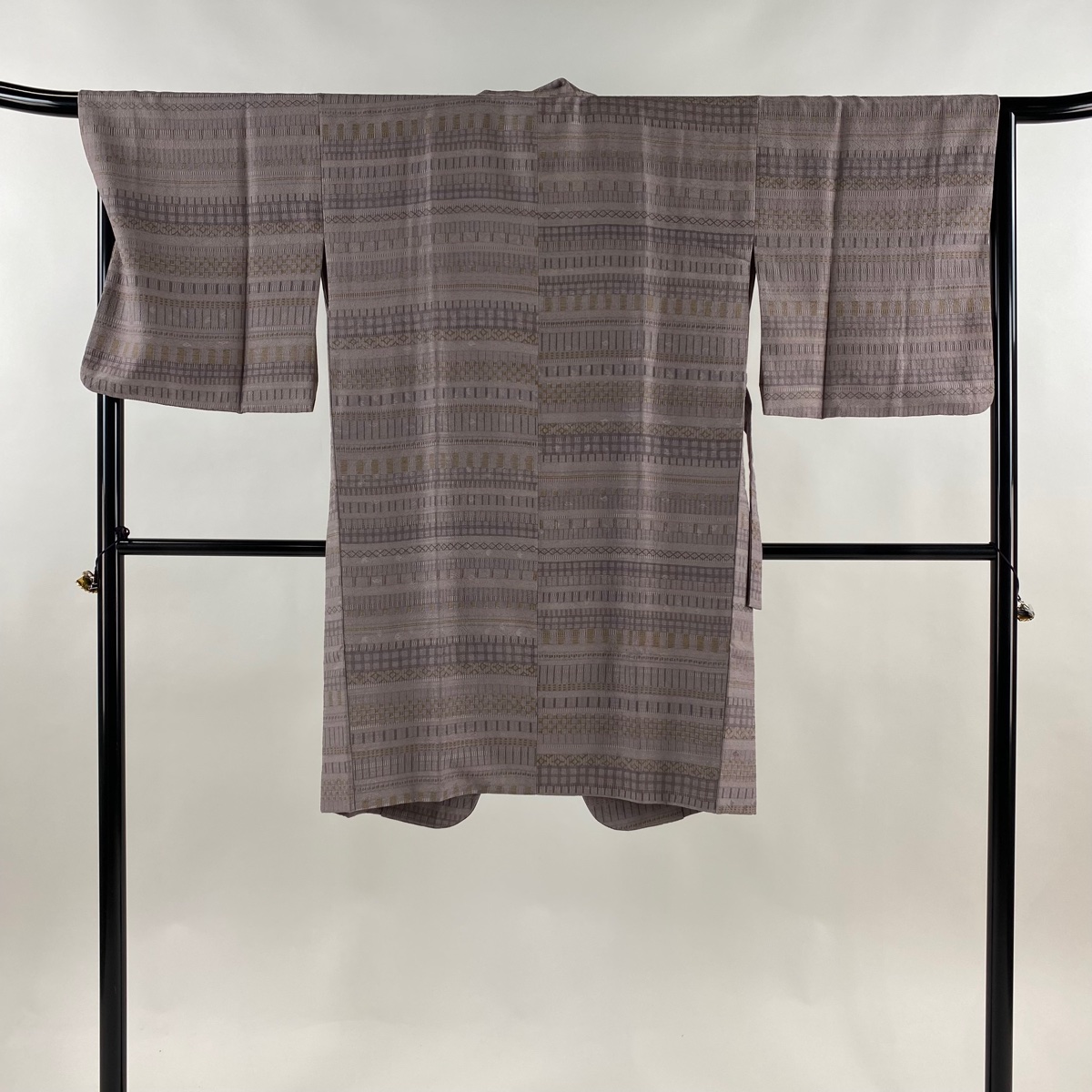 道中着 身丈105cm 裄丈67cm M 和装コート 地紋 市松 金彩 灰紫 正絹 逸品 中古