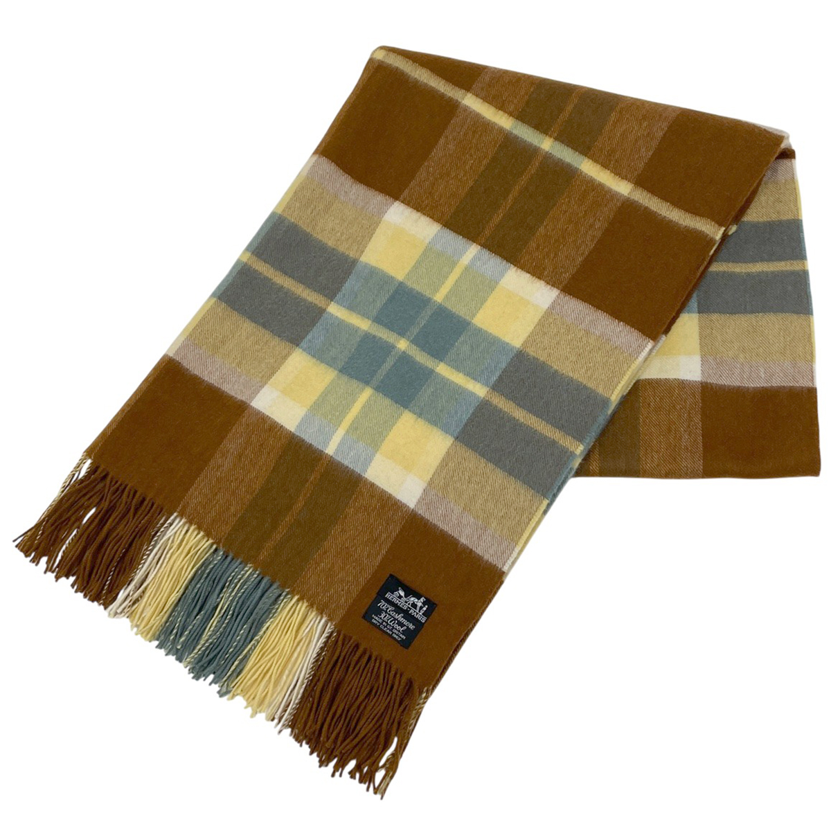 エルメス HERMES チェック柄 ショール フリンジ 大判 ショール カシミヤ ウール ブラウン イエロー レディース 中古 在庫一掃