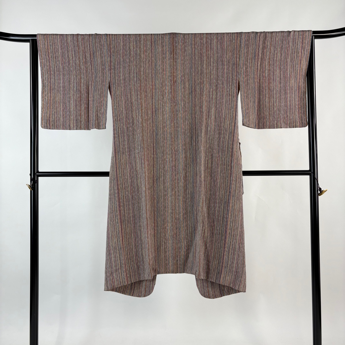 美品 道中着 身丈116cm 裄丈65cm M 和装コート 縦縞 縮緬 小豆色 正絹 名品 中古