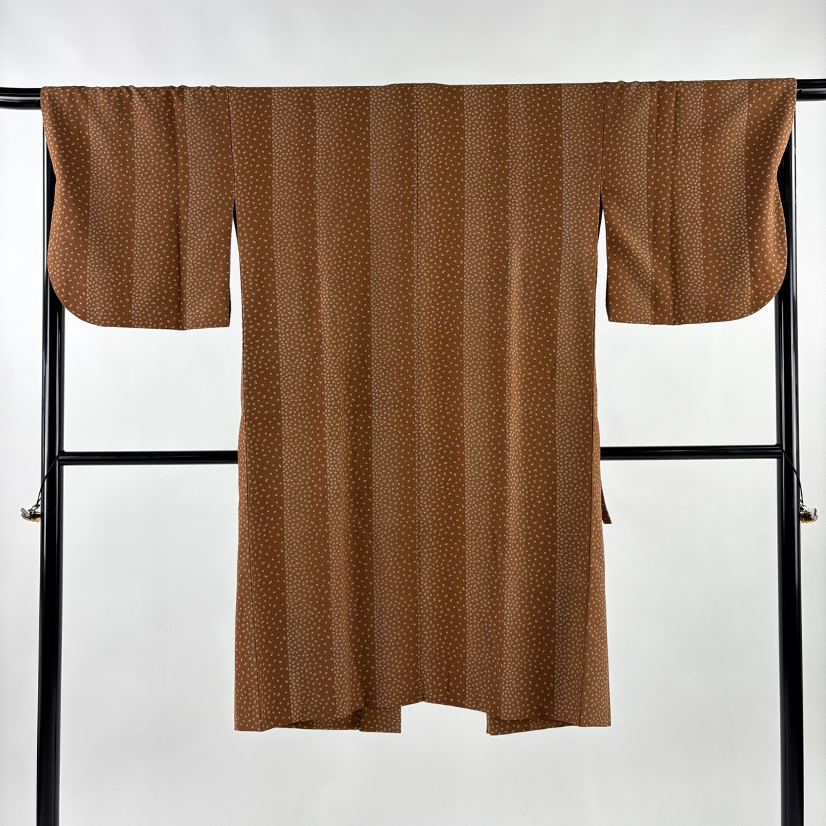 美品 道中着 身丈113cm 裄丈66.5cm M 和装コート 小花 縦縞 茶色 正絹 秀品 中古