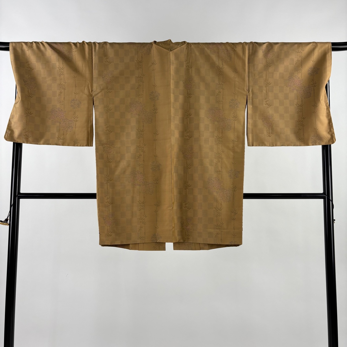 美品 道中着 身丈88cm 裄丈70cm L 和装コート ほていや 花丸文 竹 黄土色 正絹 秀品 中古