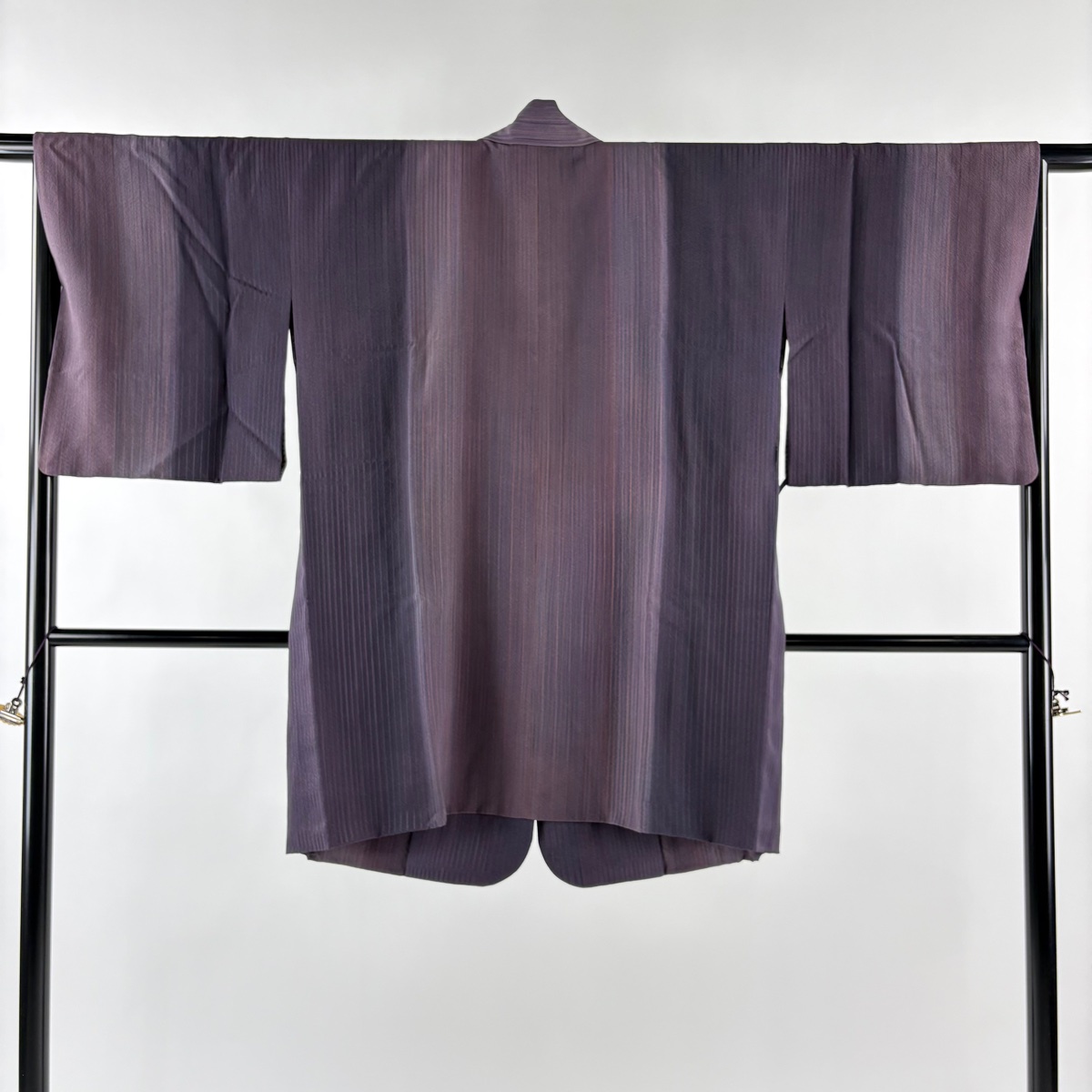 美品 道中着 身丈90cm 裄丈67.5cm L 和装コート 着物衿 縦縞 ぼかし 紫 正絹 秀品 中古