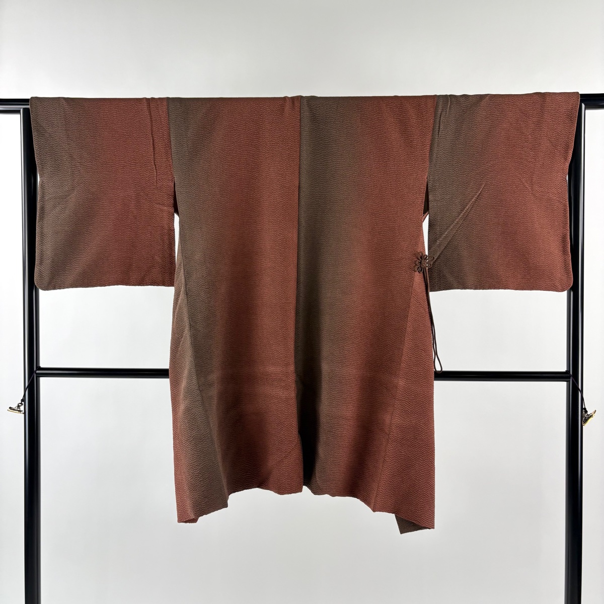 美品 道中着 身丈100cm 裄丈65cm M 和装コート ぼかし 絞り 茶色 正絹 秀品 中古