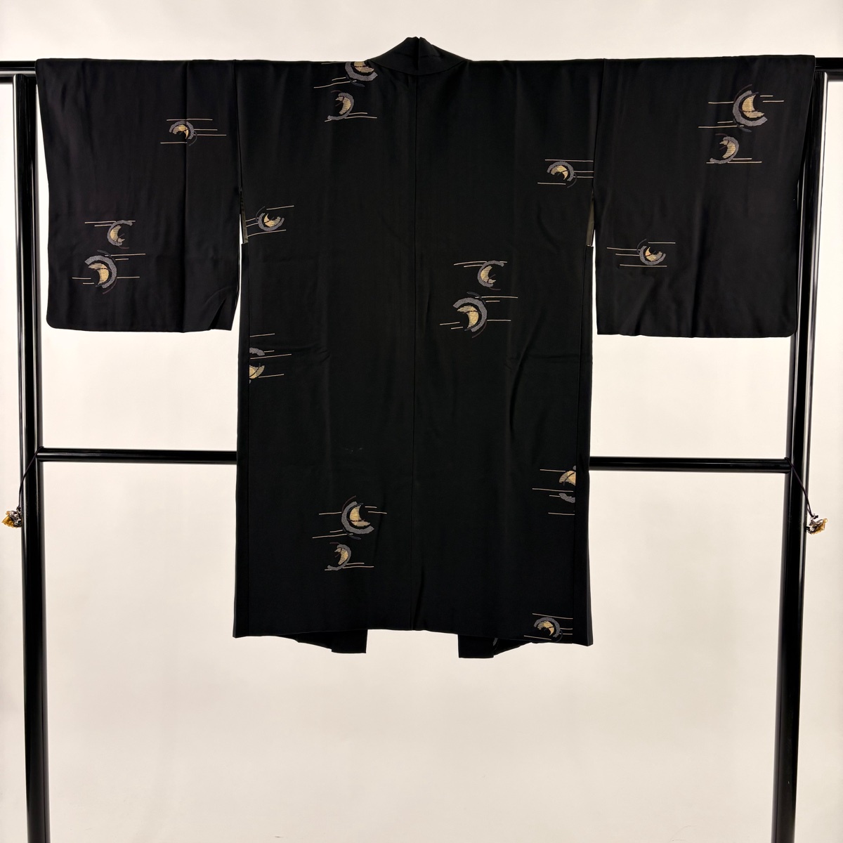 羽織 身丈96.5cm 裄丈63.5cm S 月 金彩 黒 正絹 名品 中古