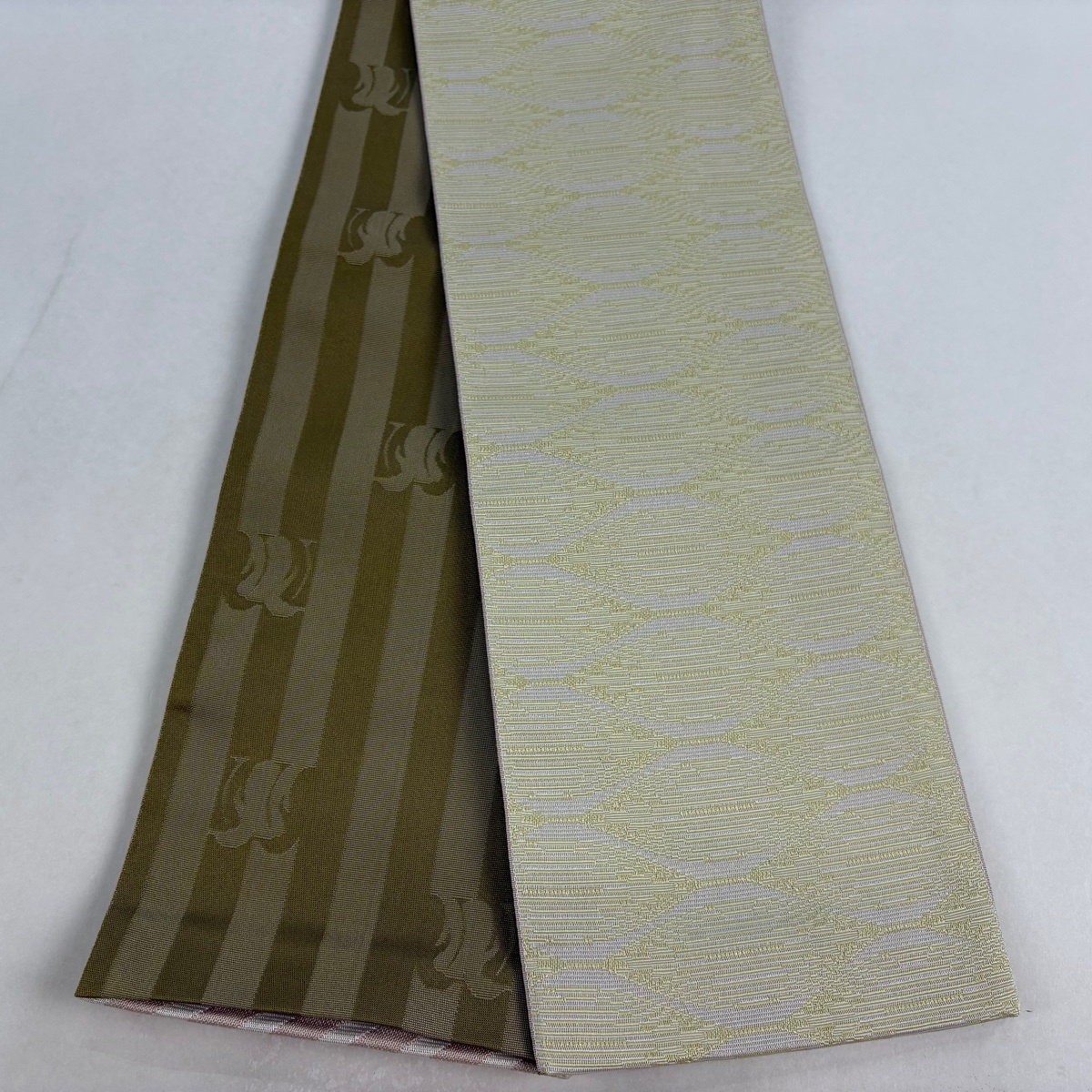 帯の幅が半分で扱いやすい半幅帯でございます。