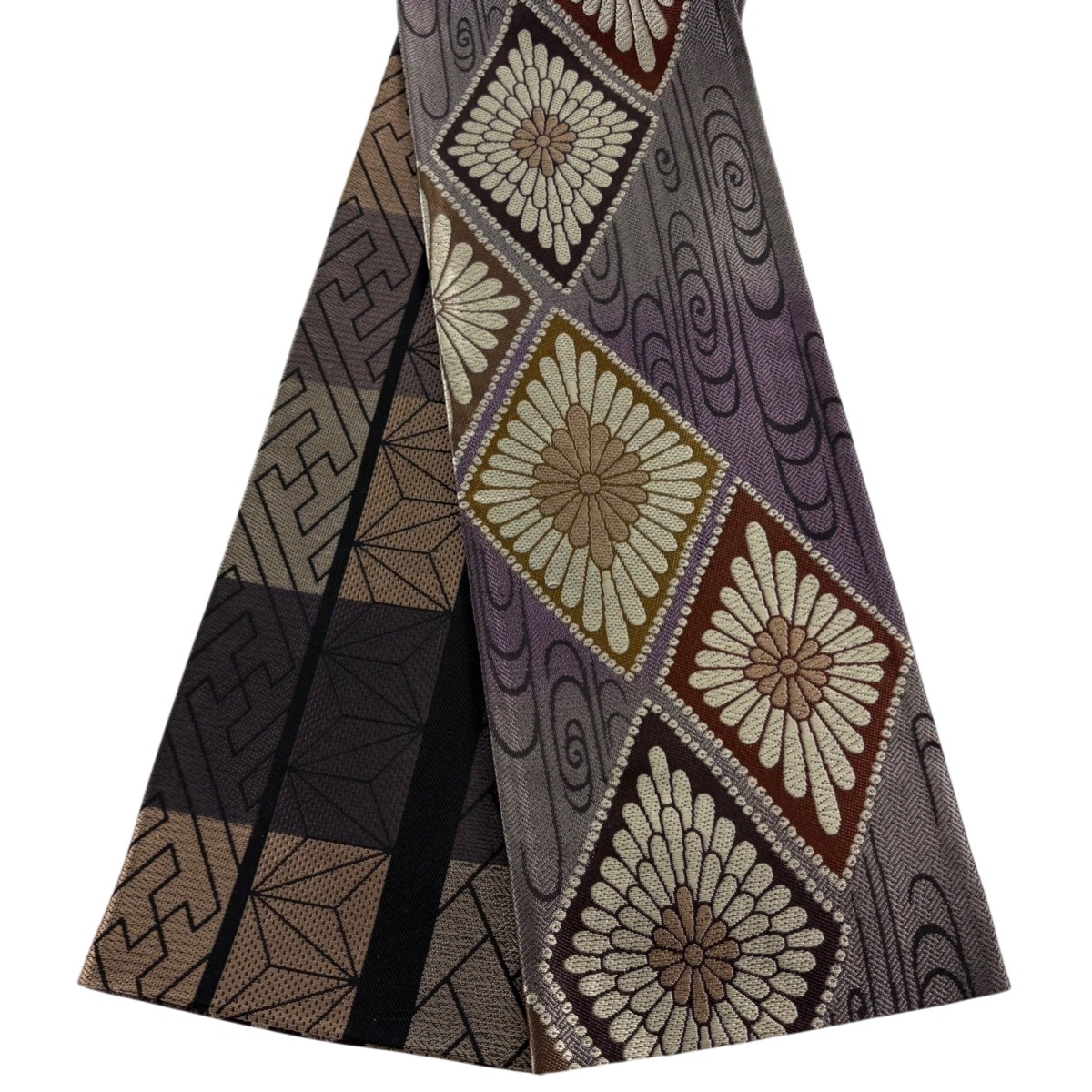 美品 半幅帯 名品 やまと 花菱 流水 薄茶色 正絹 中古
