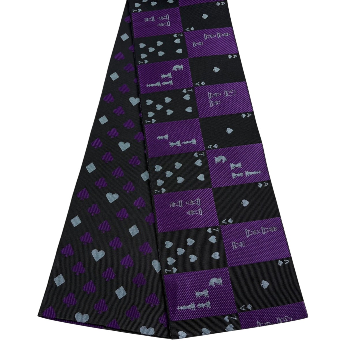 美品 半幅帯 名品 チェスの駒 トランプ 紫 正絹 中古