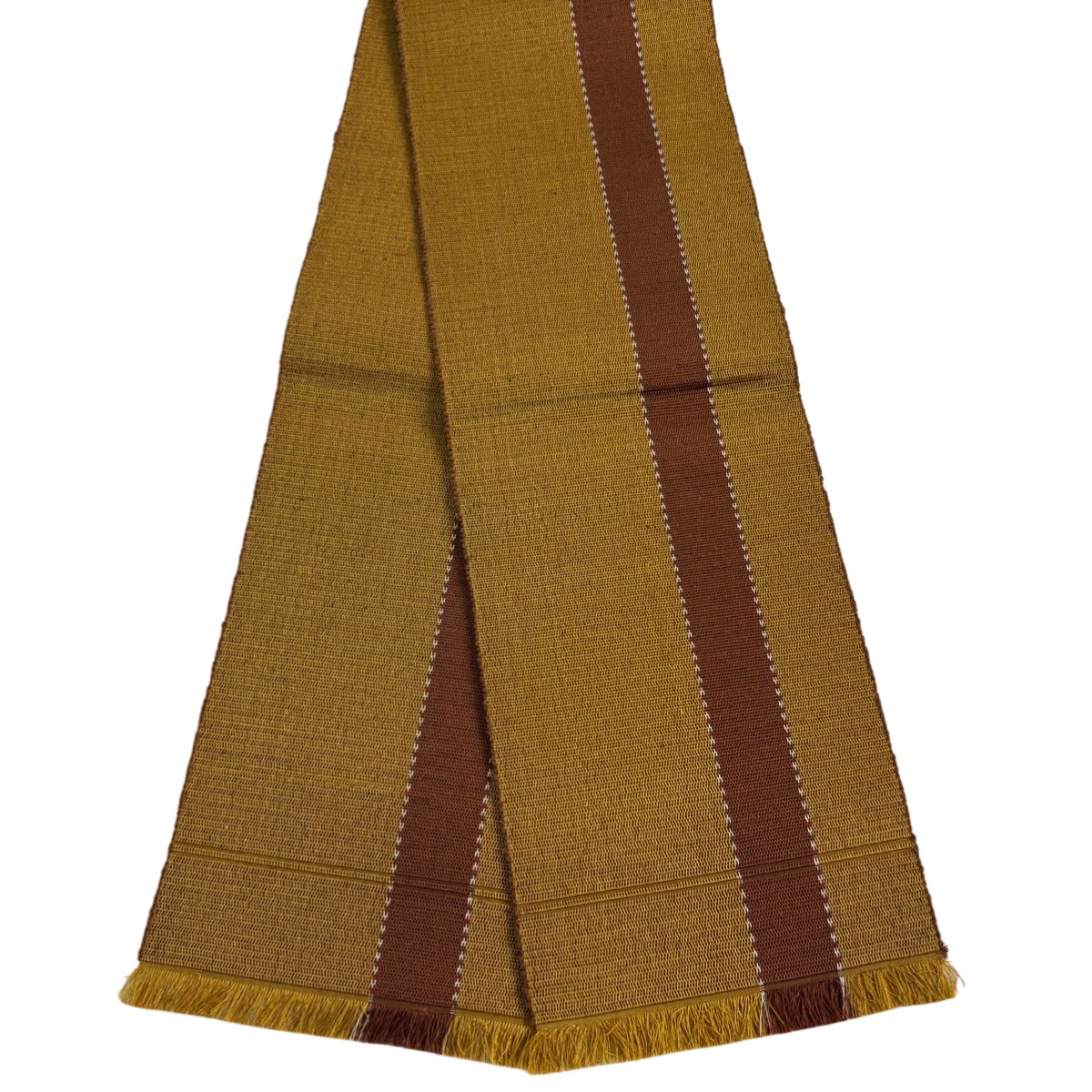 美品 半幅帯 名品 縞 山吹茶色 正絹 中古