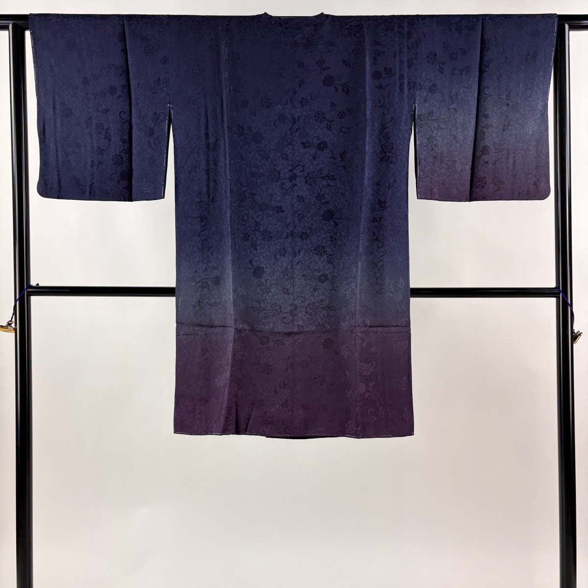 美品 道行 身丈101cm 裄丈62.5cm S 和装コート 角衿 リバーシブル 地紋 裾ぼかし 濃紺 正絹 名品 中古