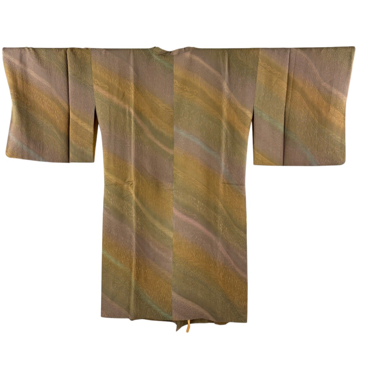 美品 道行 身丈104cm 裄丈69cm L 和想コート 角衿 斜縞 唐草 ぼかし 茶色 正絹 名品 中古
