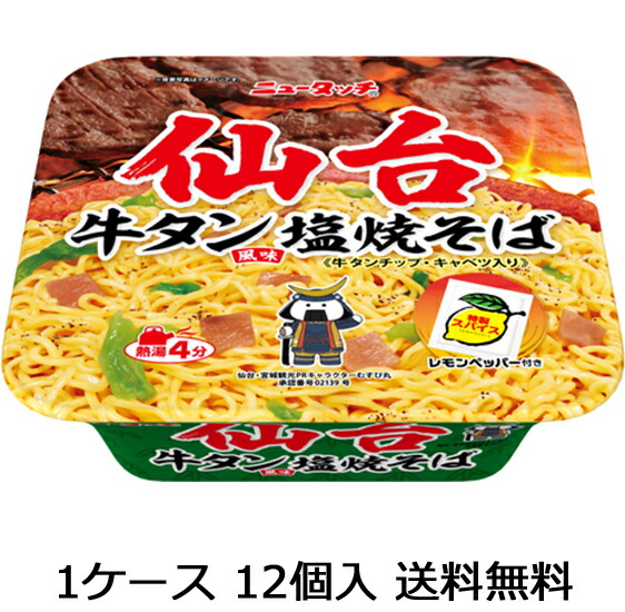 【送料無料(九州・沖縄除く)】ニュータッチ 仙台牛たん塩 焼そば 12食(1ケース)