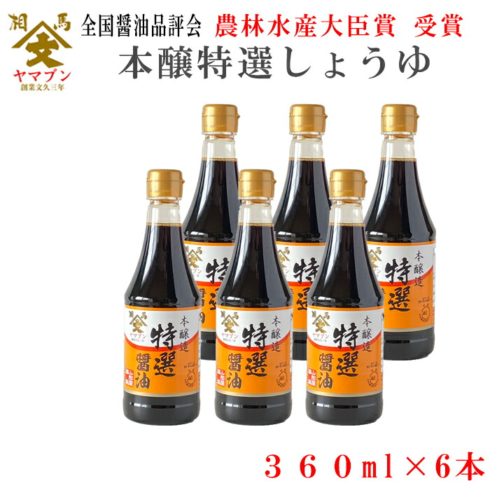 【日本一に輝いたしょうゆ】ヤマブン 本醸造特選しょうゆ 360ml 6本セット