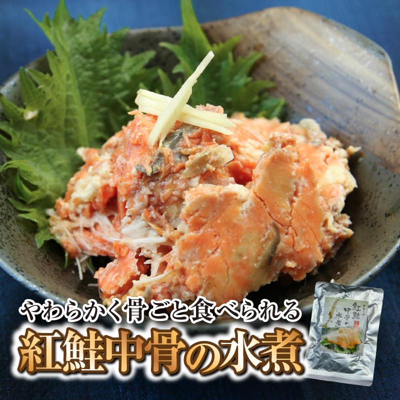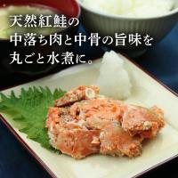 天然紅鮭の中落ち肉と、中骨の旨味を丸ごと水煮にしました。