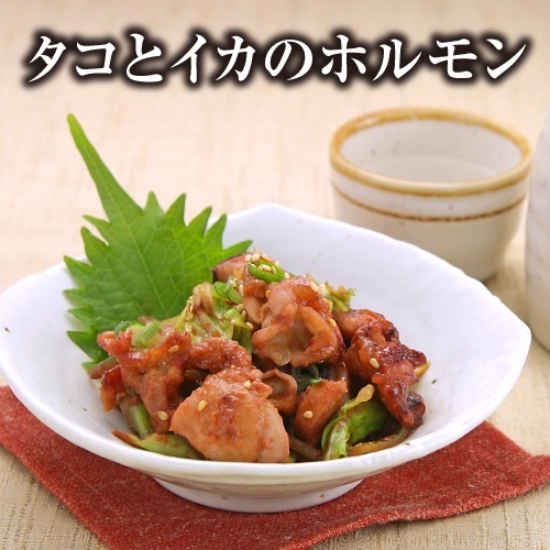 ミズダコ(北海道沖)、スルメイカ(北海道沖)、味噌、砂糖、醤油、コチジャン、スルメイカ内蔵、生姜、にんにく、ごま油、豆板醬、みりん、(一部に小麦・いか・大豆・ごまを含む)