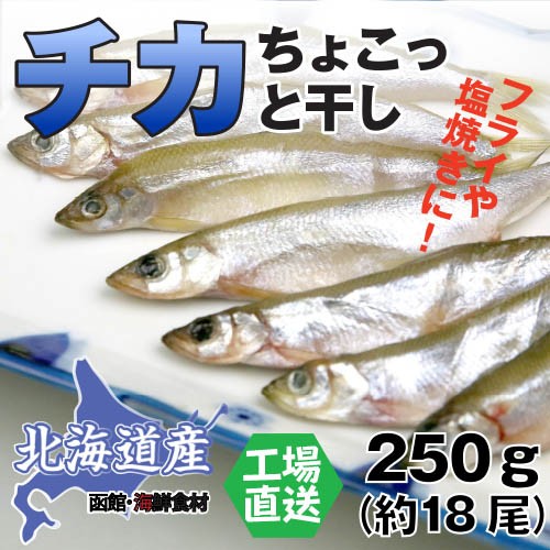 北海道産の新鮮なチカをちょこっと干し!お料理に使いやすい小さめサイズですので、定番の塩焼きはもちろん、天ぷらやフライ、唐揚げなどにもそのまま簡単にご活用いただけます。これ一つ冷凍庫に入れておけば、おかずに困った時にも大活躍しちゃいますよ〜!