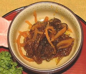 北海道特産のスルメをふんだんに使い、昆布、数の子を加え、醤油に漬け甘辛く仕上げた逸品。