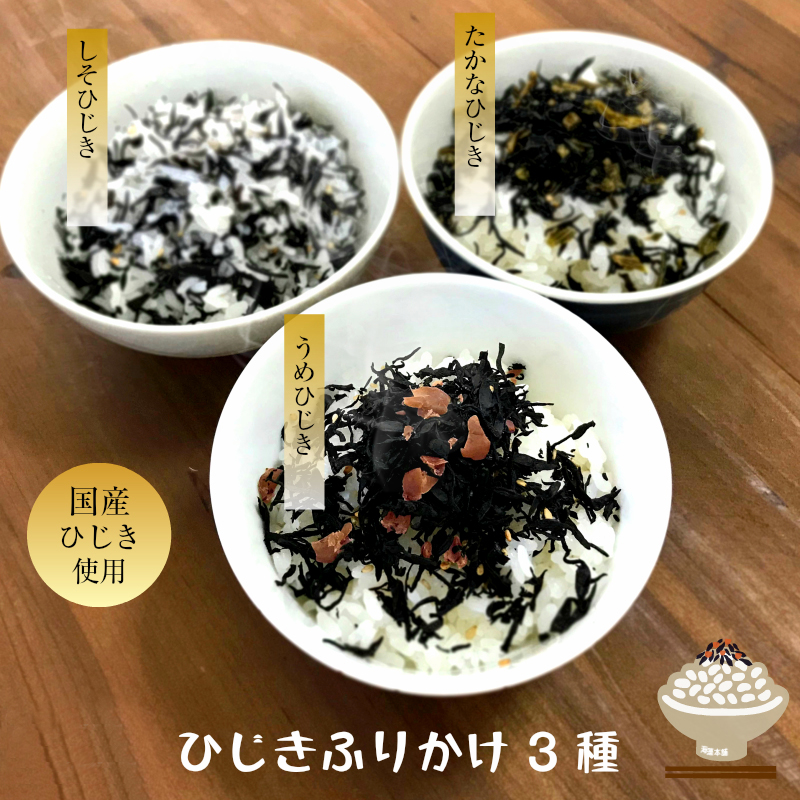 海藻本舗 ひじきふりかけ 送料無料 180g(60g×3袋)メール便 国産原料使用 ひじきごはん しそひじき 梅ひじき たかなひじき