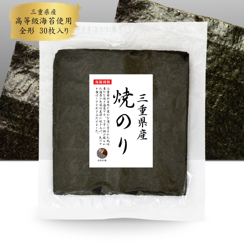 海藻本舗 焼のり 三重県産 全形30枚 高等級 国産 家庭用 おにぎり 手巻き寿司に最適
