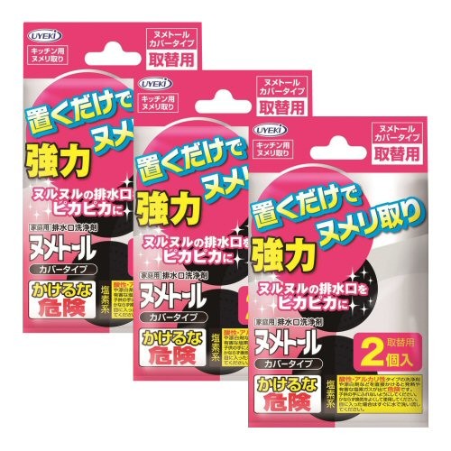 ◆台所の排水口ストレーナー以外では使用しない。 ◆オーバーフロー式およびシンクポケット付き流し台には、構造上サビやすいので使用しない。 ◆毎日水を使わない流し台には使用しない。 サビるおそれがある。 ◆旅行などで2日間以上水を使わない場合は、本品を取り出し乾燥させてラップやビニール袋に包み蓋のない容器で保管する。 ◆塩素系の漂白剤(台所用漂白剤)、酸性タイプの洗浄剤(浴室用・トイレ用洗浄剤)を直接かけない。 ◆一時的に強い塩素臭が発生する恐れがあるので、熱湯および高温の油を直接かけない。 ◆ステンレス等の金属類やゴム等に腐食・劣化・サビを発生させることがある。特に銅製品には使用しない。 ◆錠剤は完全に使い切る。万一途中で使用を中止する場合は、錠剤を大量の水で溶かしてから捨てる。また、火の中には捨てない。 ◆本品は食べ物ではないので、口に入れない。 ◆塩素臭があった場合は、大量の水を流し、必ず換気する。 ◆子供の手が届く所には置かない。 ◆容器を開けない。 ◆直射日光のあたる所、高温、高湿の場所に保管しない。 ◆漂白作用があるので衣類に付着しないように注意する。 |