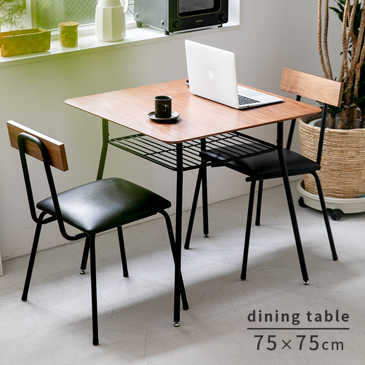 家具 ダイニングテーブル カフェ ダイニング テーブル 75 75cm 正方形 高さ72cm 天然木 木製 ウォールナット アイアン 脚 棚 棚付き ブルックリン シンプル モダン おしゃれ かわいい かっこいい 一人暮らし インテリア