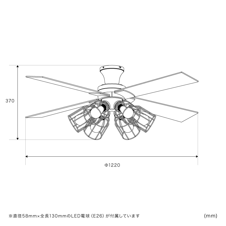 消費電力:モーター / 45W、付属LED電球 / 36W(6W×6灯)