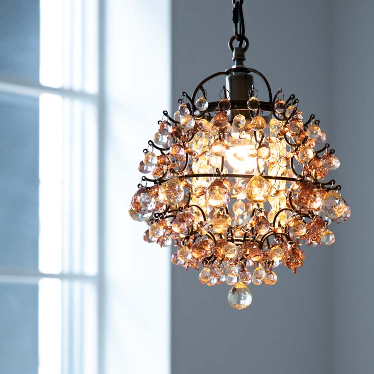 1灯 ペンダントライト かわいい プチシャンデリア おしゃれ 照明 シャンデリア アンティーク LED 天井照明 ハンギング 姫系 ライト ガラス 風 ビーズ 姫 寝室 玄関 廊下 トイレ