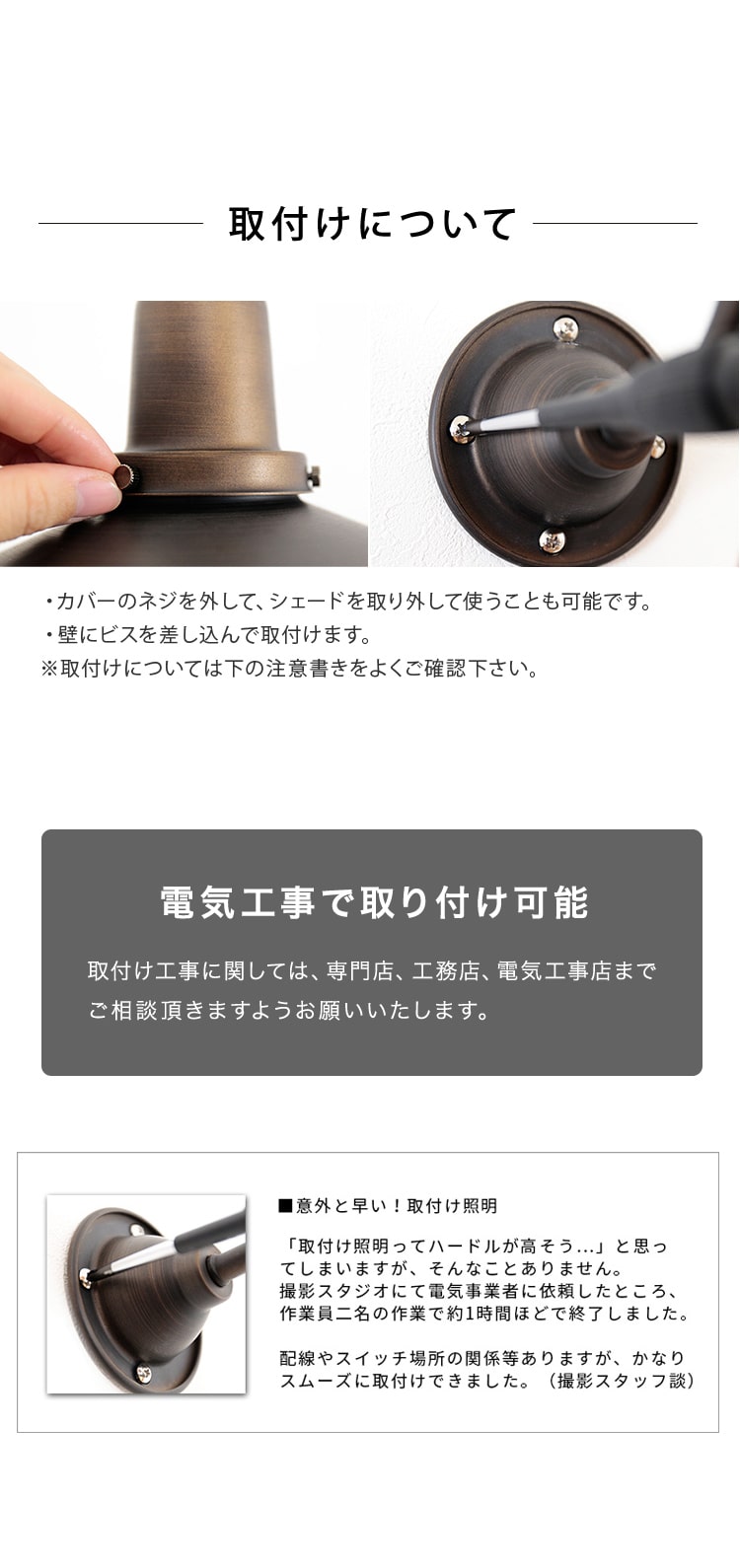 こちらは壁に直接取付けて固定し使用するタイプの照明です。