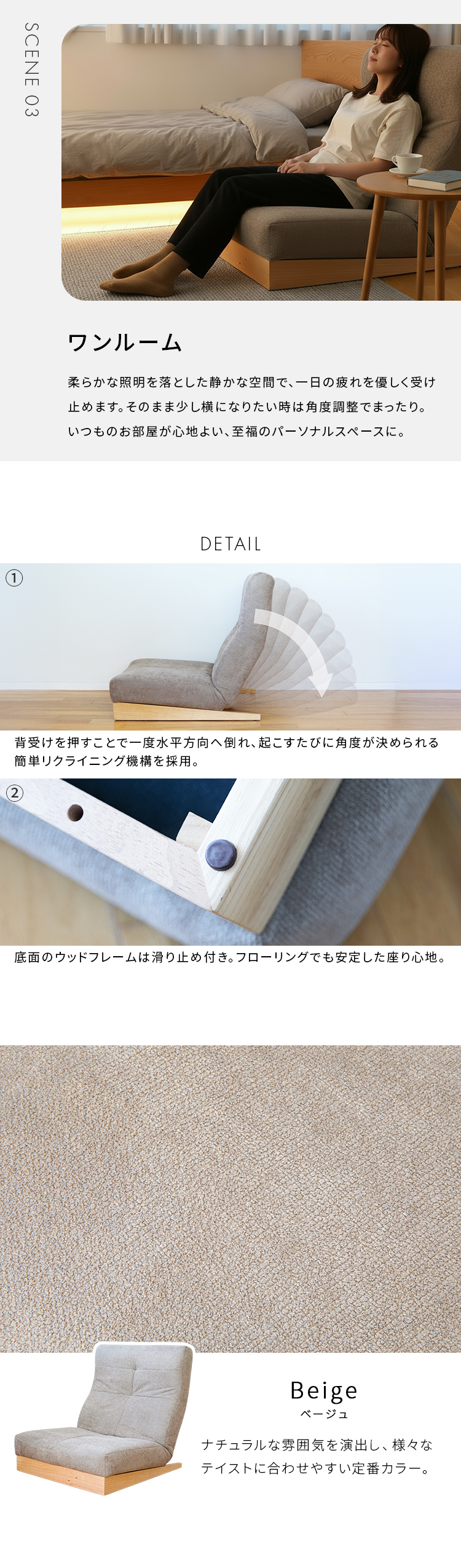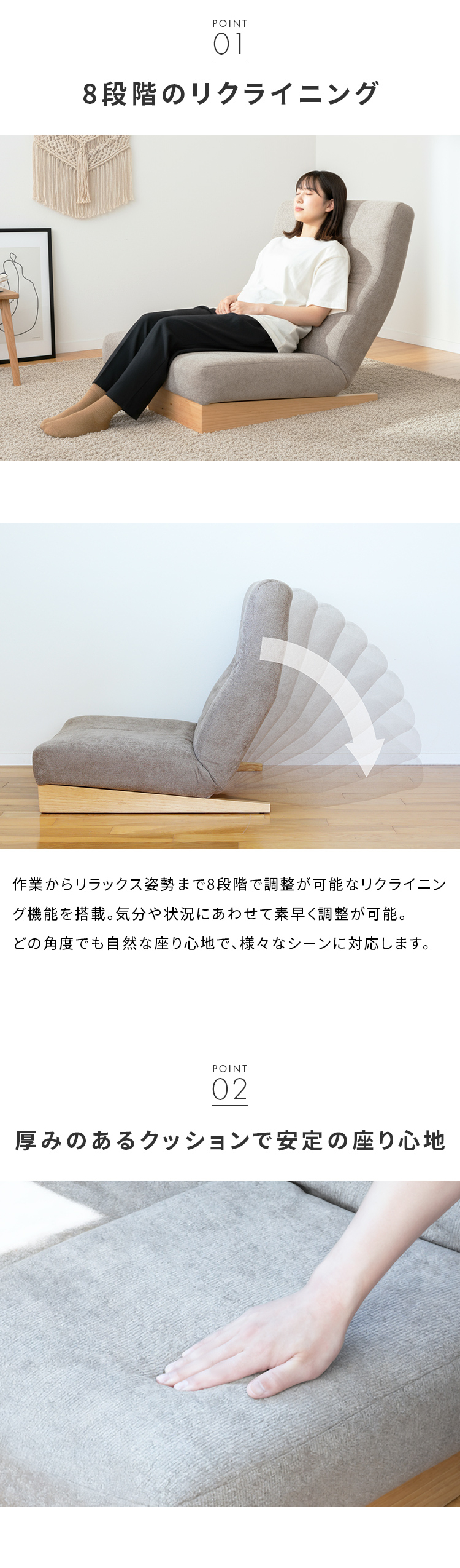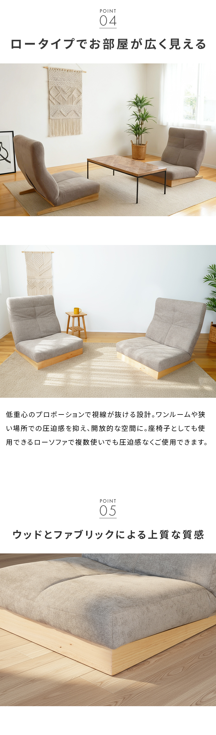 リクライニング ソファ 座椅子 一人掛け ローソファ 幅75 ソファー ロータイプ ハイバック アームレス 一人用 低め おしゃれ ラバーウッド シンプル 北欧