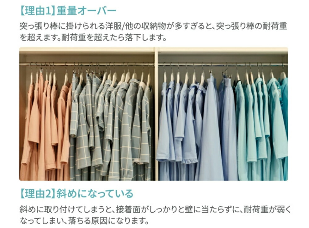 ・突っ張り棒を設置する場所についてはしっかりとした場所かどうか予めご確認ください。