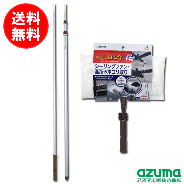 シーリングファン・高所モップと「安心連結」の三段伸縮柄・一本柄(つなぎ柄)のセット。