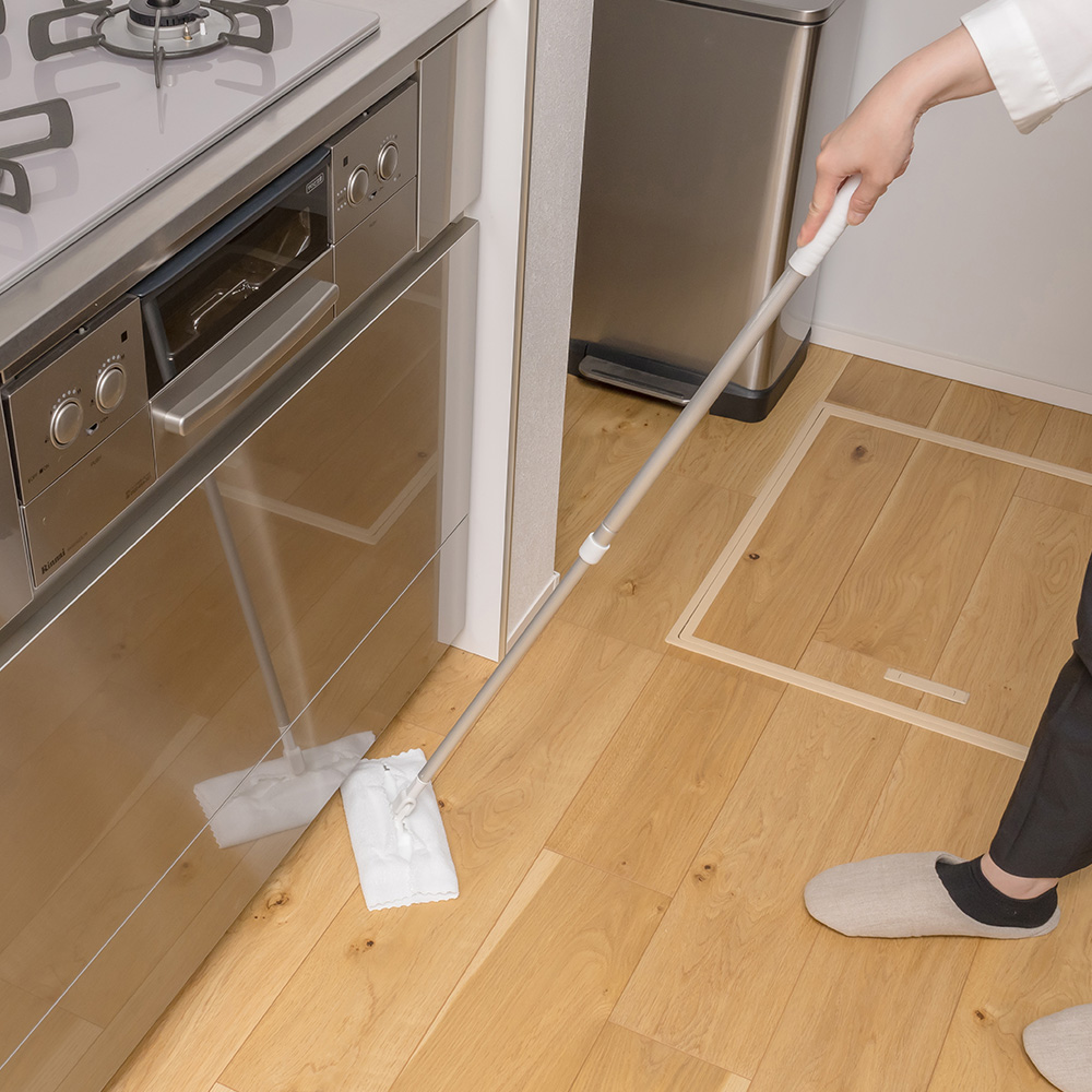 腰をかがめずに立ったままラクに拭き掃除ができます。