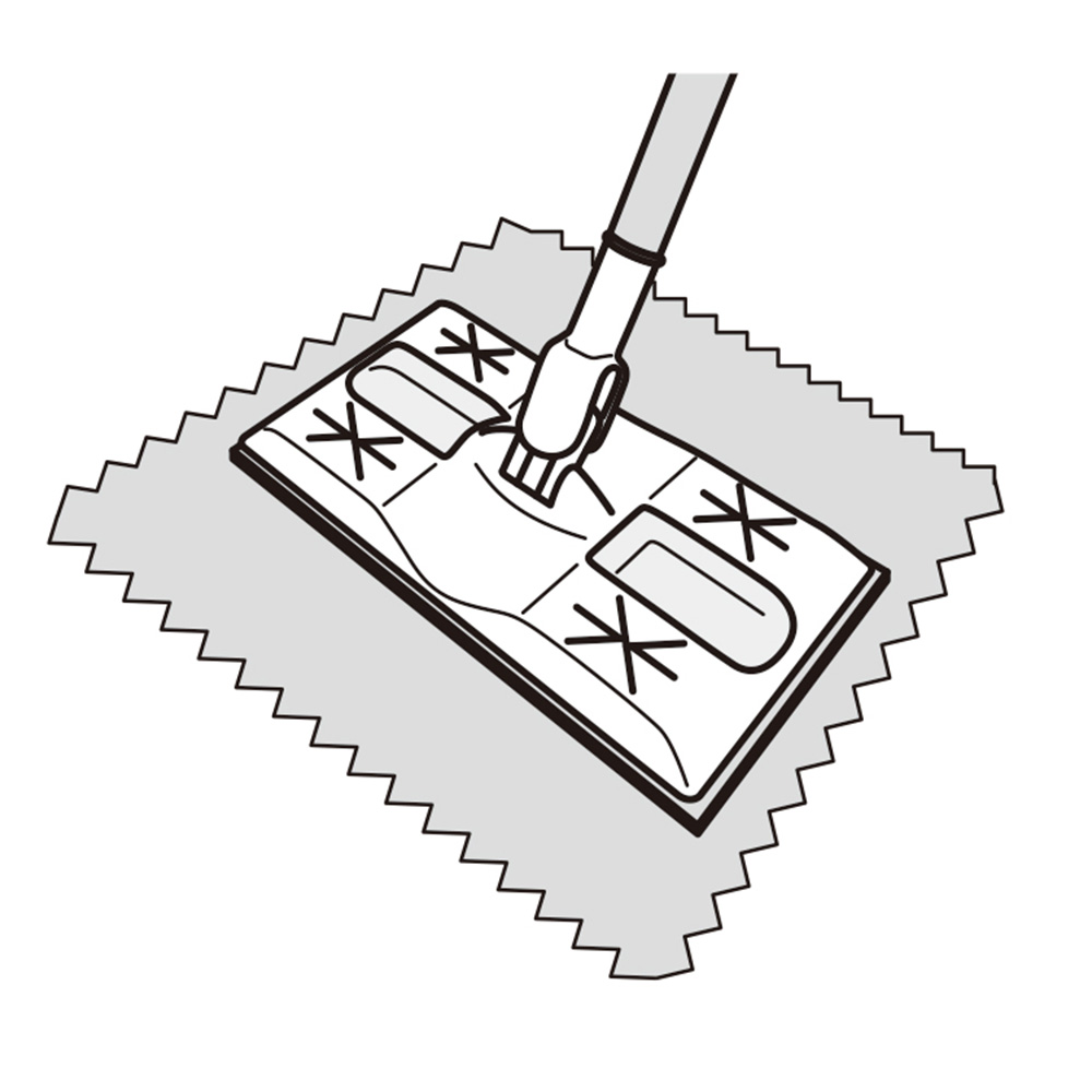 手の届かない狭い場所や、身長よりも高いところのお掃除には、クロスやシートをフローリングワイパーに取り付けてのお掃除が便利です。