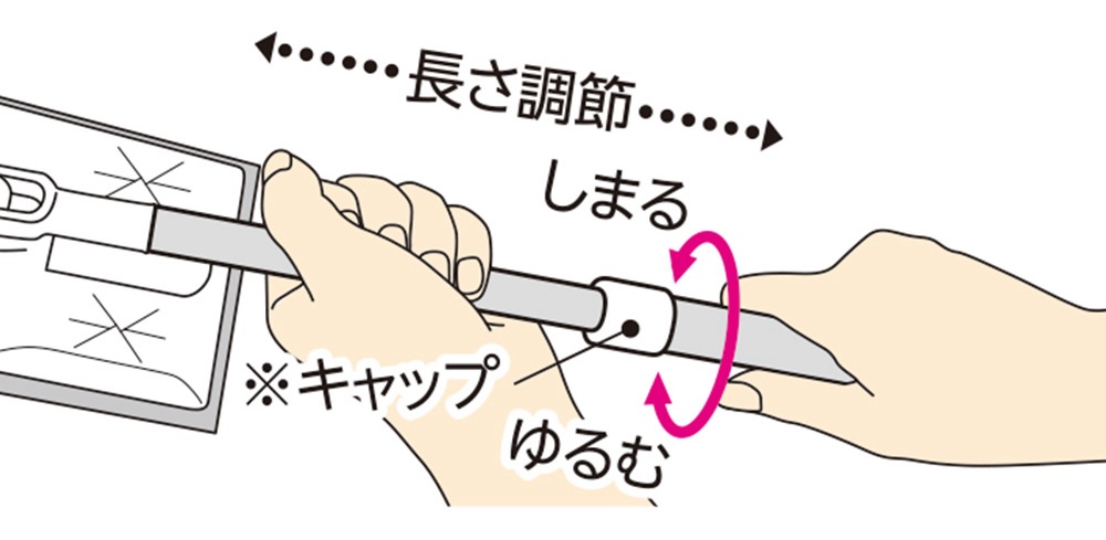柄は使いやすい長さに調節でき、使用後は縮めてコンパクトに収納できます。(使用時全長:約60〜97cm)